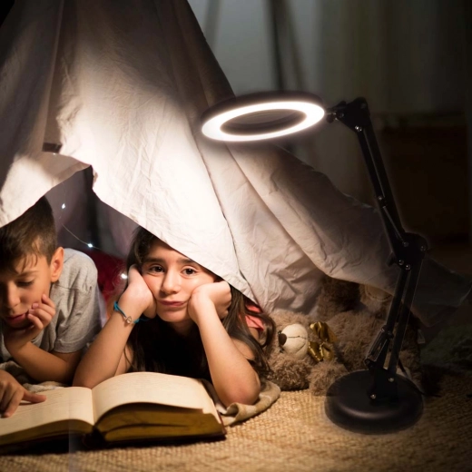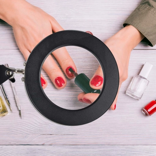 Kruhový LED prstenec obklopuje lupou x3, takže vidíte i ty nejmenší detaily jasně a pohodlně – ideální pro ruční práce, elektroniku a čtení drobných textů.