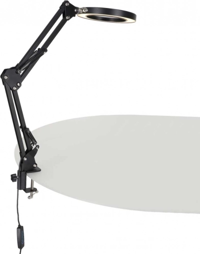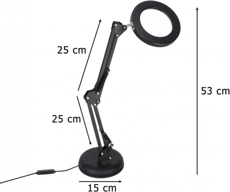 Tato elegantní černá LED lampa kombinuje osvětlení s lupou x3 v jednom, takže skvěle poslouží při modelářství, šití, elektronice, rukodělné tvorbě i při čtení drobného písma. Kruhový LED prstenec poskytuje rovnoměrné, neoslňující světlo s věrným podáním barev (CRI > 80), aby byly detaily viditelné ostře a pohodlně.