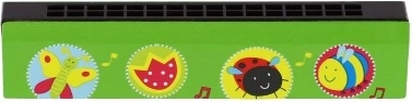 Tato dětská dřevěná harmonika je skvělým startem do světa hudby. Díky pevné dřevěné konstrukci a veselým vzorům děti snadno zaujme a motivuje k objevování zvuků a melodií. Lehká a dobře uchopitelná, ideální pro malé začátečníky.