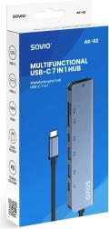 Kompaktní USB‑C hub 7v1 Savio AK‑82 promění jeden port vašeho notebooku či tabletu v výkonné centrum konektivity. Nabízí HDMI 4K @30 Hz, rychlý přenos dat 5 Gbps, Power Delivery pro nabíjení přes USB‑C, čtečku SD/microSD a dvojici portů USB‑A. Funguje ihned po připojení bez ovladačů a je ideální na práci, prezentace i zábavu.
