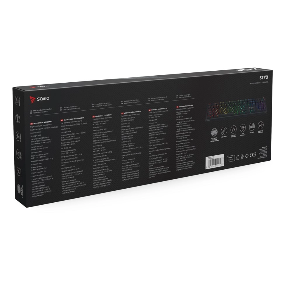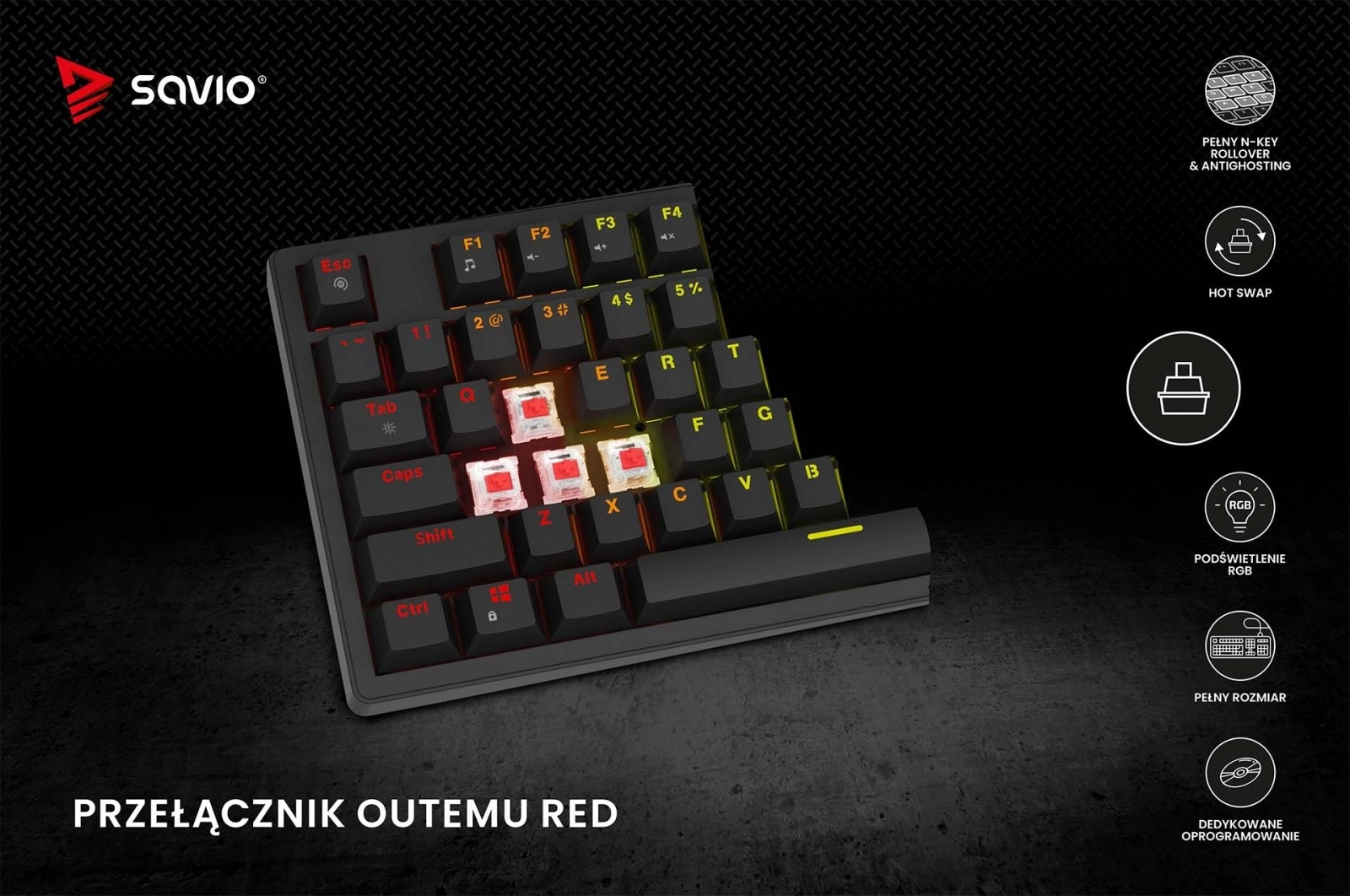 Mechanická klávesnice Savio STYX v plné velikosti kombinuje pohodlí každodenního psaní s herním výkonem. Lineární spínače OUTEMU RED s nízkou aktivační silou a tichým chodem zaručují rychlé reakce a plynulé psaní – ideální pro kompetitivní hraní i dlouhé texty. Díky životnosti až 50 milionů stisků je připravena na náročné nasazení.
