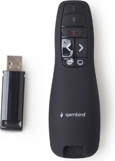 Ovládejte prezentace s jistotou díky tomuto bezdrátovému prezenteru se silným laserovým ukazovátkem. Nabízí snadné ovládání tlačítky, spolehlivé připojení Plug & Play a svobodu pohybu během prezentace.