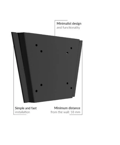Kompaktní a plochý nástěnný držák pro malé obrazovky 10–29". Díky minimalistické konstrukci je montáž rychlá a snadná, přičemž vzdálenost od zdi jen 18 mm zajišťuje elegantní a nenápadné uchycení. Kvalitní zpracování potěší i náročné uživatele a hodí se do hotelových pokojů i menších čekáren.