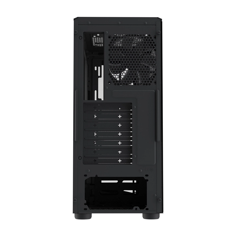 Skříň podporuje až 6 ventilátorů a radiátory vodního chlazení (vpředu až 280 mm, nahoře 240 mm s výškou RAM do 35 mm, vzadu 120 mm). Z výroby je osazen 1× MasterFan Lite vzadu, který pomáhá udržet optimální teploty i u náročnějších konfigurací. Díky prostornému interiéru pohodlně osadíte dlouhé grafické karty i vyšší chladiče CPU.