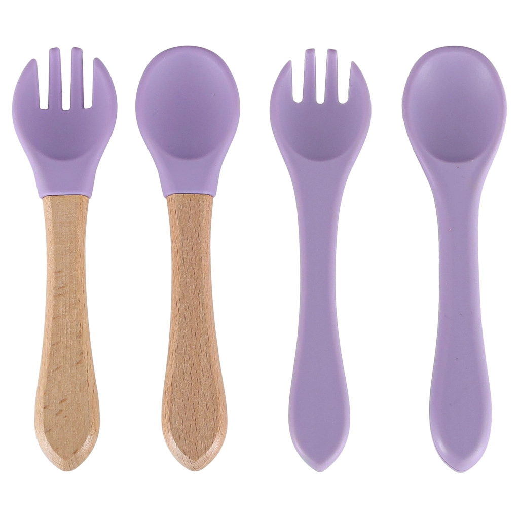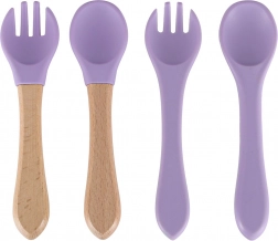 - silikon bez BPA, dřevo (rukojeti příborů)