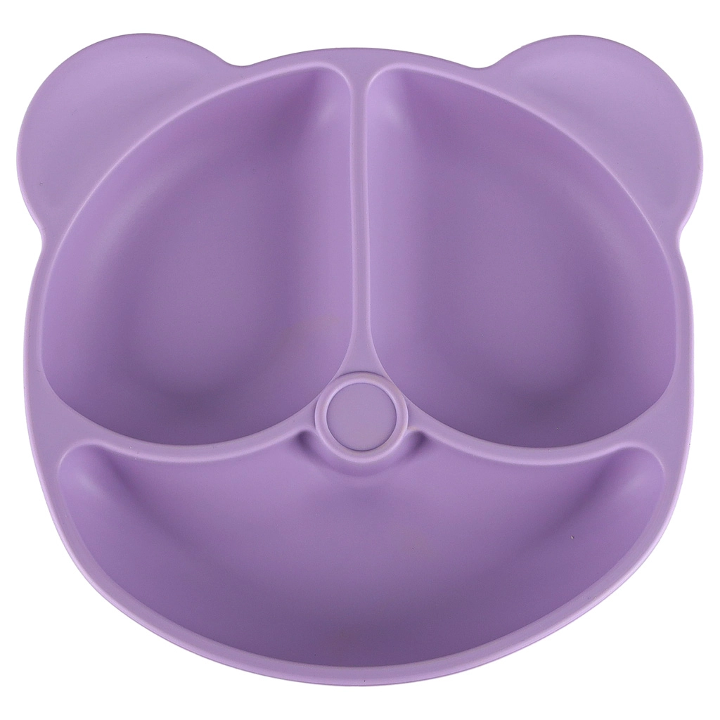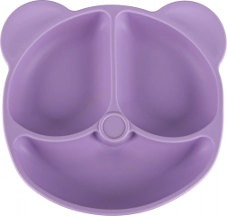 Dělěný talíř ve tvaru medvídka a miska s přísavkou pevně drží na stole či pultu židličky, takže se minimalizují nehody a převrácení při jídle.