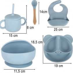 Tato kompletní dětská silikonová jídelní sada je navržena pro pohodlné a bezpečné krmení i učení se samostatnému jídlu. Miska a rozdělený talíř s přísavkou pevně drží na stole nebo tácu jídelní židličky, takže výrazně snižují nepořádek u stolování. Měkký, odolný a neklouzavý silikon je příjemný na dotek a snadno se čistí.