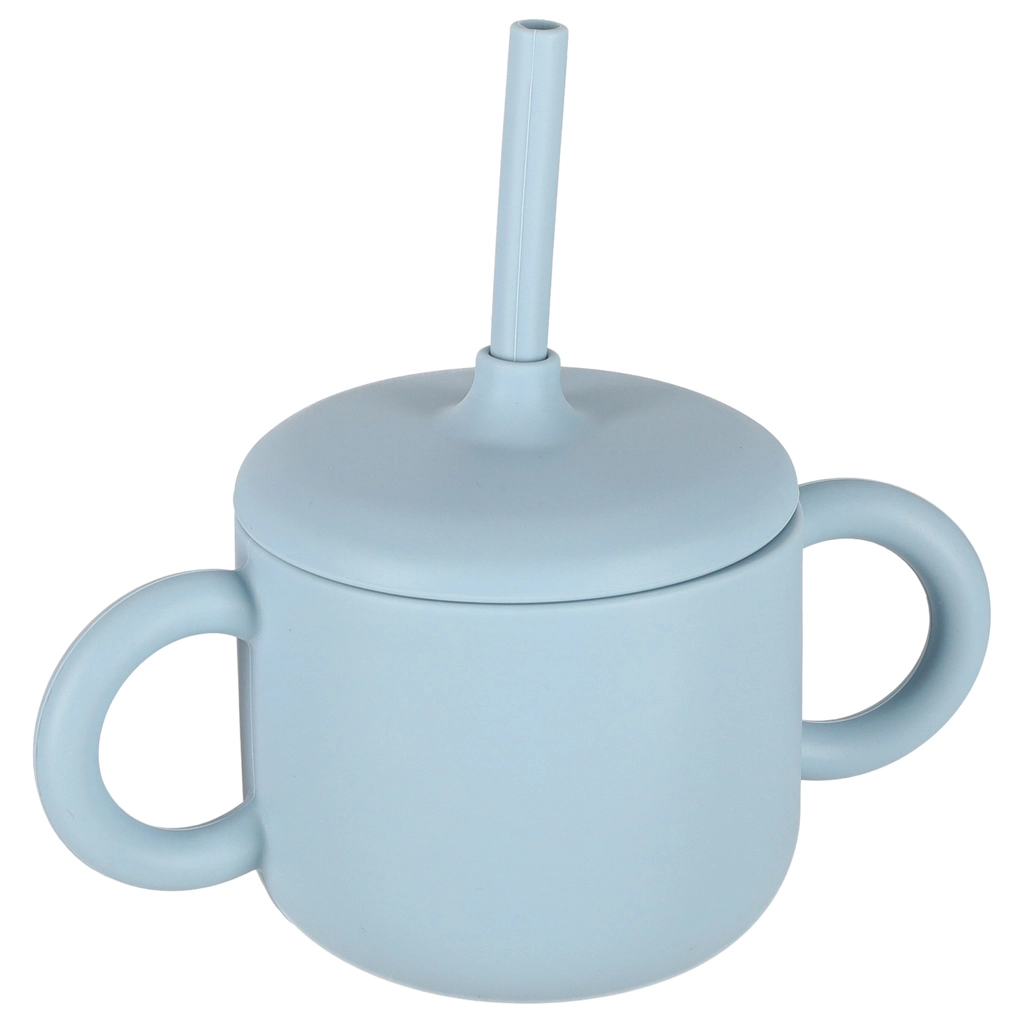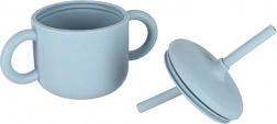 Dvouuchý silikonový hrnek s víčkem a integrovanou slámkou usnadňuje přechod od lahvičky. Měkký povrch neklouže a je šetrný k malým ručkám.