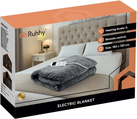 Užijte si okamžité teplo a pohodlí s elektrickou dekou RUHHY o rozměru 180 × 130 cm. Nabízí rychlé nahřátí, 6 úrovní teploty, měkký a příjemný materiál a intuitivní ovládání pomocí dálkového ovladače s LED displejem. Díky ochraně proti přehřátí, termostatu a možnosti praní v pračce na 30 °C je ideální pro chladné večery, uvolnění svalového napětí i odpočinek v posteli či na pohovce.