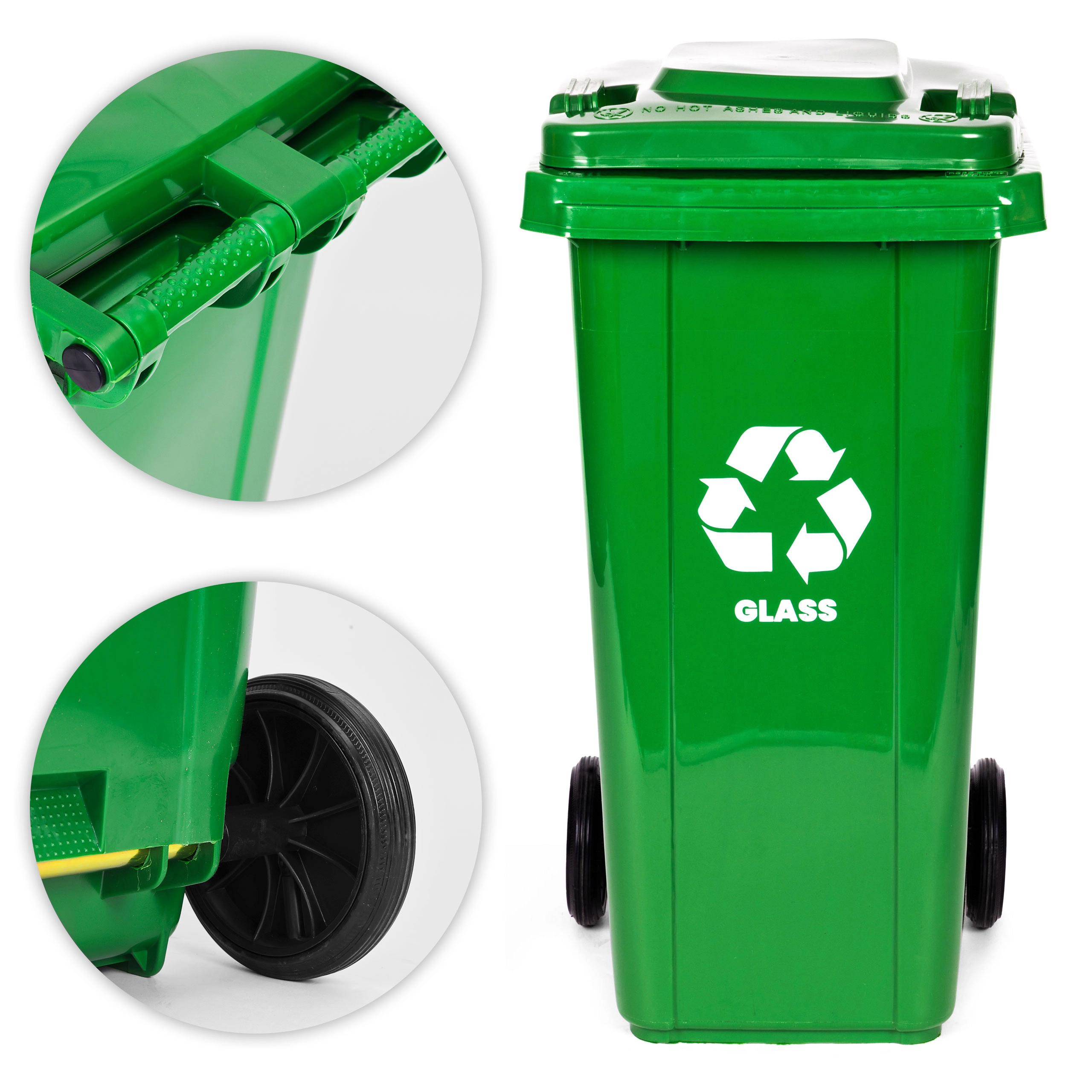 Pořádek při třídění odpadu je jednodušší se zeleným kontejnerem na sklo o objemu 120 l. Robustní korpus z HDPE odolává UV záření, chemikáliím i nárazům, díky čemuž je ideální pro každodenní používání venku i uvnitř. Těsnící víko brání pronikání deště a úniku zápachu, takže okolí zůstává čisté a bez nežádoucích efektů.