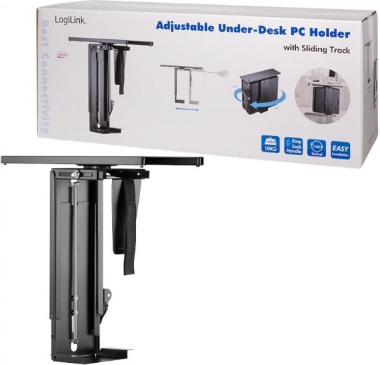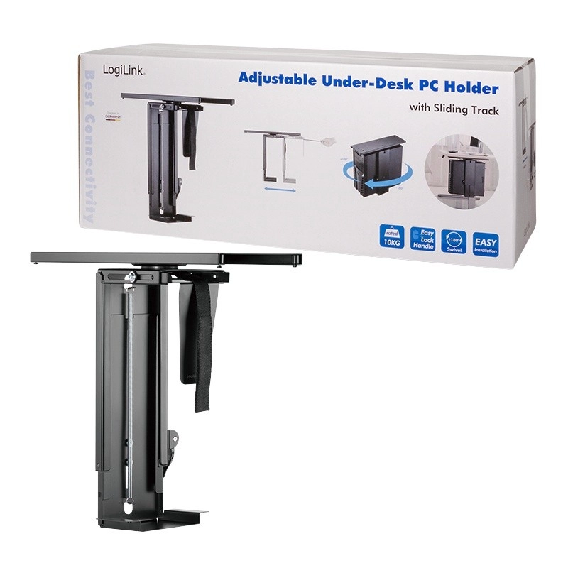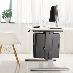 Praktický držák pro montáž počítače pod deskou stolu pomáhá udržet pracovní plochu čistou a ergonomickou. Univerzální nastavitelná konstrukce pojme různé velikosti skříní a díky pevné kovové konstrukci zajistí stabilní a bezpečné uchycení.