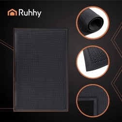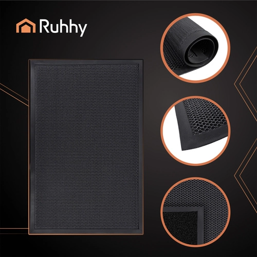Rohož RUHHY je spolehlivým řešením pro vstupy do domu, bytu, kanceláře i prodejny. Její tvrdá a odolná konstrukce s 3D mřížkou efektivně seškrabuje bláto, písek a vodu z obuvi, takže interiér zůstává déle čistý. Vyvýšené okraje pomáhají udržet nečistoty a vlhkost na rohoži a brání ohýbání rohů.
