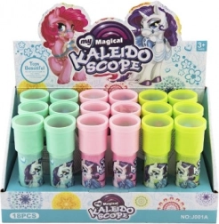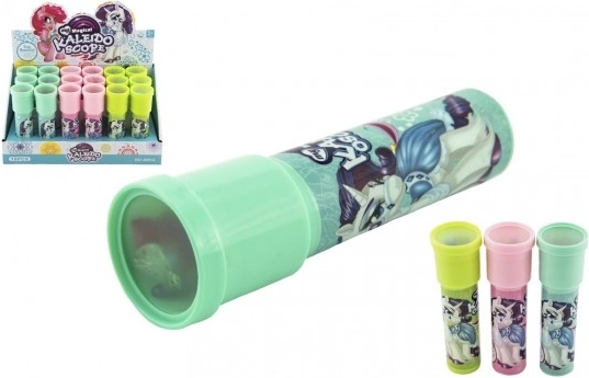 Objevte kouzlo barevných vzorů s dětským kaleidoskopem s motivem jednorožce od značky TEDDIES. Stačí se podívat proti světlu a uvnitř se rozzáří okouzlující obrazce tvořené barevnými tělísky a zrcadly. Lehká a zábavná hračka pro děti od 3 let, dostupná v mixu motivů (dodáváme dle skladových zásob).