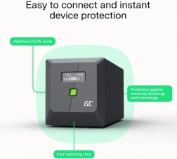 Spolehlivý záložní zdroj UPS od značky Green Cell chrání vaše zařízení před výpadky proudu, přepětím a ztrátou dat. Nabízí výkon 480 W (850 VA), rychlé přepnutí do bateriového režimu a přehledný LCD displej. Díky ochraně sítě RJ45 a chytré aplikaci máte provoz i stav baterie pod kontrolou.