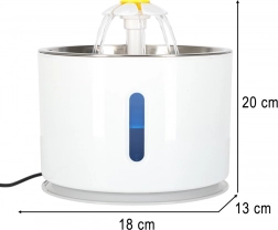 Automatická napáječka pro psy a kočky zajišťuje nepřetržitou cirkulaci vody, která je díky proudění chladnější, čistší a láká zvířata k častějšímu pití. Nerezový vršek je hygienický a snadno se čistí, průhled s modrým LED podsvitem ukazuje aktuální hladinu.