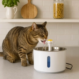 - Čerstvá voda non‑stop: cirkulace podporuje pitný režim a pohodu mazlíčků.
