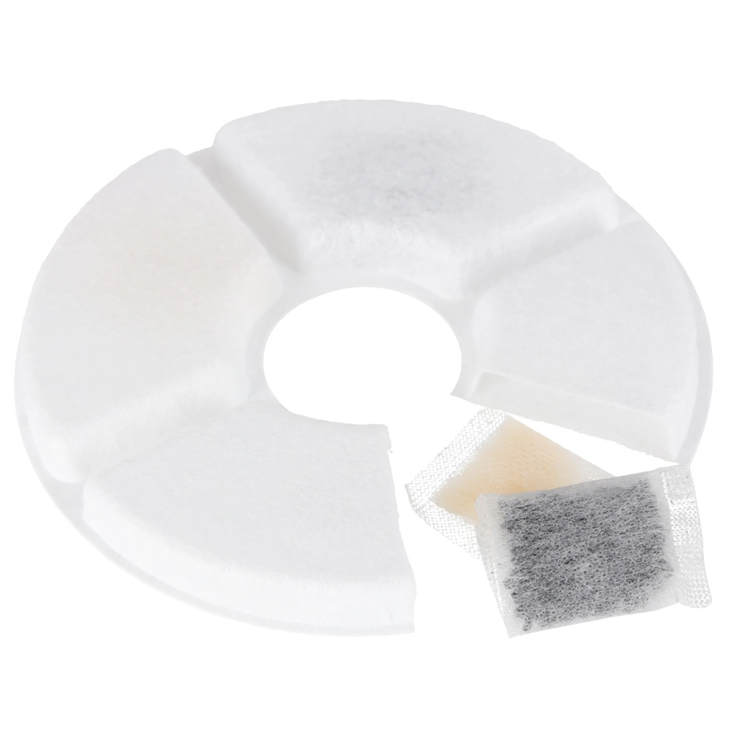 Filtrační vložka s aktivním uhlím průběžně odstraňuje prach, chlupy a drobné nečistoty. Jednoduché USB napájení (DC 5 V / 1 A) a nízká spotřeba 1,5 W umožní tichý provoz po celý den. Objem 2,4 l je ideální pro kočky i malé a střední psy.