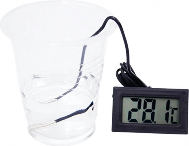 Elektronický teploměr s velkým LCD displejem a sondou na dlouhém kabelu. Sondu (čidlo) lze umístit v podstatě kamkoli, např. do akvária, terária, lednice, mrazáku, skleníku atd. Všude tam, kde potřebujete přesné měření teploty v rozmezí -50 až 70 stupňů Celsia!