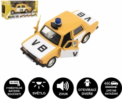 Stylový model policejního auta VB Lada potěší každého malého policistu. Nabízí zpětný chod, světelné a zvukové efekty, otevírací přední dveře a kompaktní velikost 12 cm. Baterie 3× AG3 jsou součástí balení.