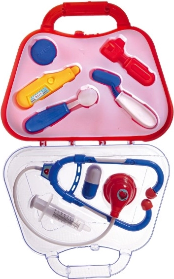 Tato dětská lékařská sada nabízí vše, co malý doktor potřebuje, přehledně uložené v kufříku s madlem. Praktický kufřík s madlem, bezpečné plastové nástroje a kompaktní rozměry 23 × 19 × 6 cm z ní dělají ideální hračku pro rozvoj fantazie a jemné motoriky dětí od 3 let.