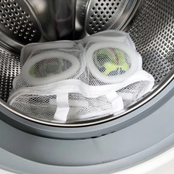 Tento kvalitní síťový vak je navržen pro bezpečné praní obuvi v automatické pračce. Jemná síťovina umožňuje volný průtok vody a pracího prostředku, zatímco pevný zip udrží boty bezpečně uvnitř. Díky praktickým poutkům lze obuv po praní snadno zavěsit a nechat rovnoměrně vyschnout.