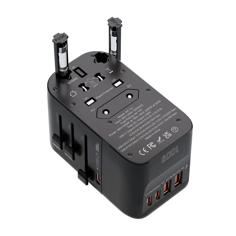 Kompaktní cestovní adaptér BLITZWOLF BW-TA2 kombinuje mezinárodní kompatibilitu (EU/UK/US/AUS) s rychlým nabíjením GaN 100W. Nabízí 5 portů pro současné napájení více zařízení, včetně USB-C PD až 100 W pro notebooky a USB-A/USB-C s QC/PD pro telefony a příslušenství. Díky multistandardní zásuvce, posuvným vidlicím a 10A pojistce je ideální parťák pro každou cestu.