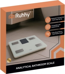 Chytrá analytická váha RUHHY s přesností BIA změří až 226 kg a v aplikaci Feelfit zobrazí až 13 ukazatelů těla. Hmotnost, BMI, tělesný tuk, voda, svaly, kosti, viscerální tuk a další hodnoty uvidíte přehledně na LCD displeji i v telefonu. Automatické zapnutí/vypnutí, pevné tvrzené sklo a 4 elektrody pro spolehlivou analýzu – ideální pro domácí kontrolu zdraví.