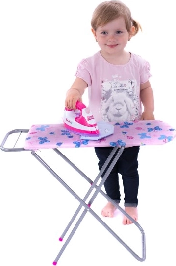 Roztomilé dětské žehlicí prkno s pevnou kovovou konstrukcí a dřevěnou deskou je ideální pro hraní na domácnost. Nabízí stabilní plochu, skládací konstrukci pro snadné uložení a barevný potah s motivy, který děti baví. Skvělé pro rozvoj fantazie a jemné motoriky. Pouze žehlicí prkno, bez žehličky.