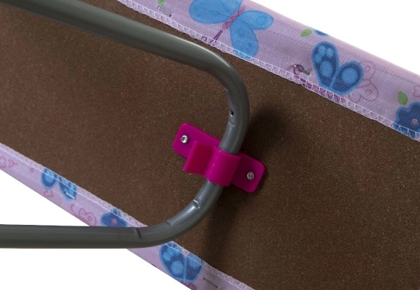 Dětské žehlicí prkno je navrženo pro malé pomocníky, kteří chtějí napodobovat dospělé při domácích činnostech. Kovová konstrukce se skládacím mechanismem a odolná dřevěná deska zajišťují stabilitu a dlouhou životnost. Barevný, hravý potah s motivy motýlků dodá každému dětskému pokojíčku šmrnc.