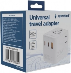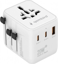 Kompaktní univerzální cestovní adaptér s výkonem 20 W a technologií GaN pro rychlé a efektivní nabíjení na cestách. Nabízí USB-C PD 20 W a USB-A QC 3.0 18 W, univerzální síťovou zásuvku a výsuvné vidlice US/UK/EU/AU pro použití ve více než 200 zemích. Lehký, snadno ovladatelný jednou rukou, s dětskými pojistkami a 10A pojistkou pro bezpečné použití.