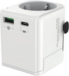 Tento univerzální cestovní adaptér s uzemněním vám bezpečně připojí elektroniku téměř kdekoliv na světě. Díky technologii GaN je menší, chladnější a efektivnější, zatímco integrované porty USB‑C PD 20 W a USB‑A QC 3.0 18 W rychle dobijí telefon, sluchátka či menší tablet. Zásuvka EU Schuko podporuje většinu evropských napájecích vidlic.