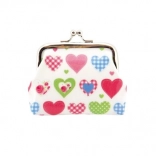 Malá peněženka s veselými vzory, ideální do kabelky nebo kapsy, pro uložení drobných předmětů jako mince či klíče.