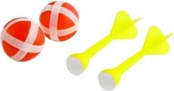 V balení najdete terč, dvě šipky a dvě míčky – vše, co potřebujete pro rychlé soutěže a rodinnou zábavu.