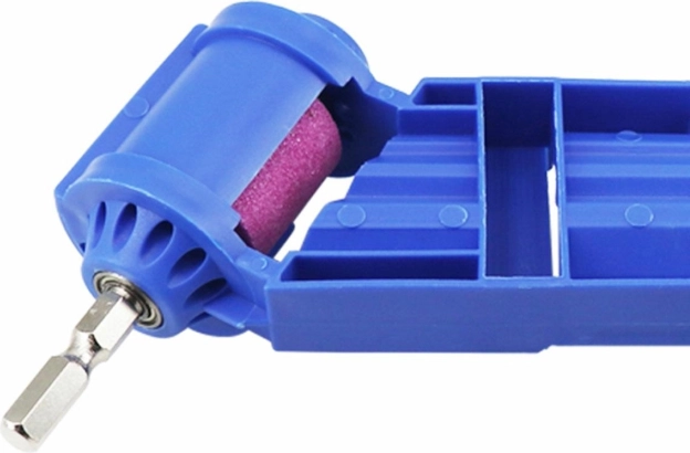 Kompaktní a lehká ostřička vrtáků pro rychlé obnovení ostří přímo na dílně i v terénu. Snadné použití – stačí ji připojit z boku k běžné vrtačce nebo akušroubováku. Tři vodicí štěrbiny pro různé průměry zajišťují přesné vedení a konzistentní úhel broušení. Součástí je brusný kámen a odolné plastové tělo v modré barvě. Vhodné pro vrtáky 2–12,5 mm.