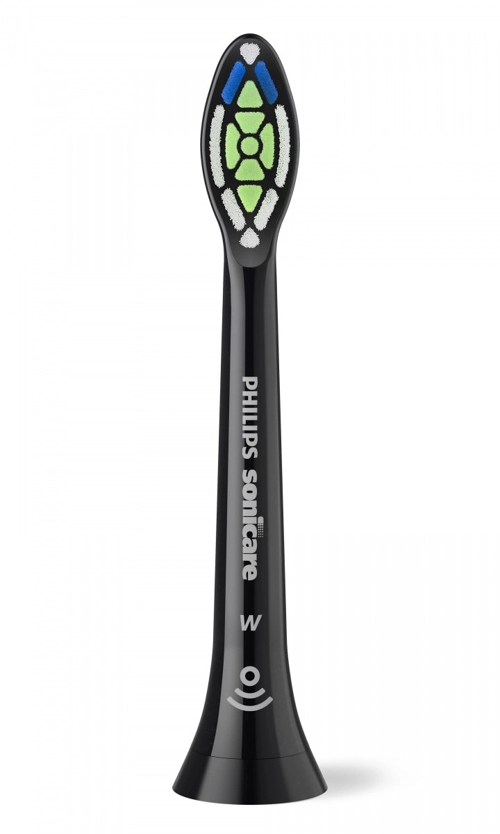Hlavice Philips Sonicare Optimal White v černém provedení jsou navrženy pro každodenní šetrné, ale maximálně účinné bělení. Speciální středová lešticí ploška a husté diamantové štětiny zvyšují kontakt s povrchem zubů, čímž pomáhají odstranit skvrny od kávy, čaje či vína a zanechávají zuby viditelně bělejší.