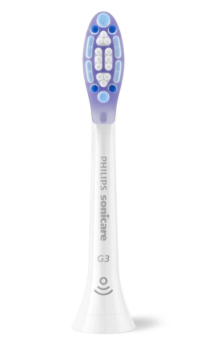 Hlavice PHILIPS Sonicare G3 Premium Gum Care jsou navrženy pro citlivou linii dásní a špičkové čištění každý den. Konkávní tvar pole štětin zvětšuje kontakt s dásněmi, zatímco víceúrovňová, jemná vlákna efektivně dosahují do mezizubních prostor a podél okraje dásní. Sonická technologie s dynamickým prouděním tekutiny pomáhá čistit i tam, kam se vlákna nedostanou.