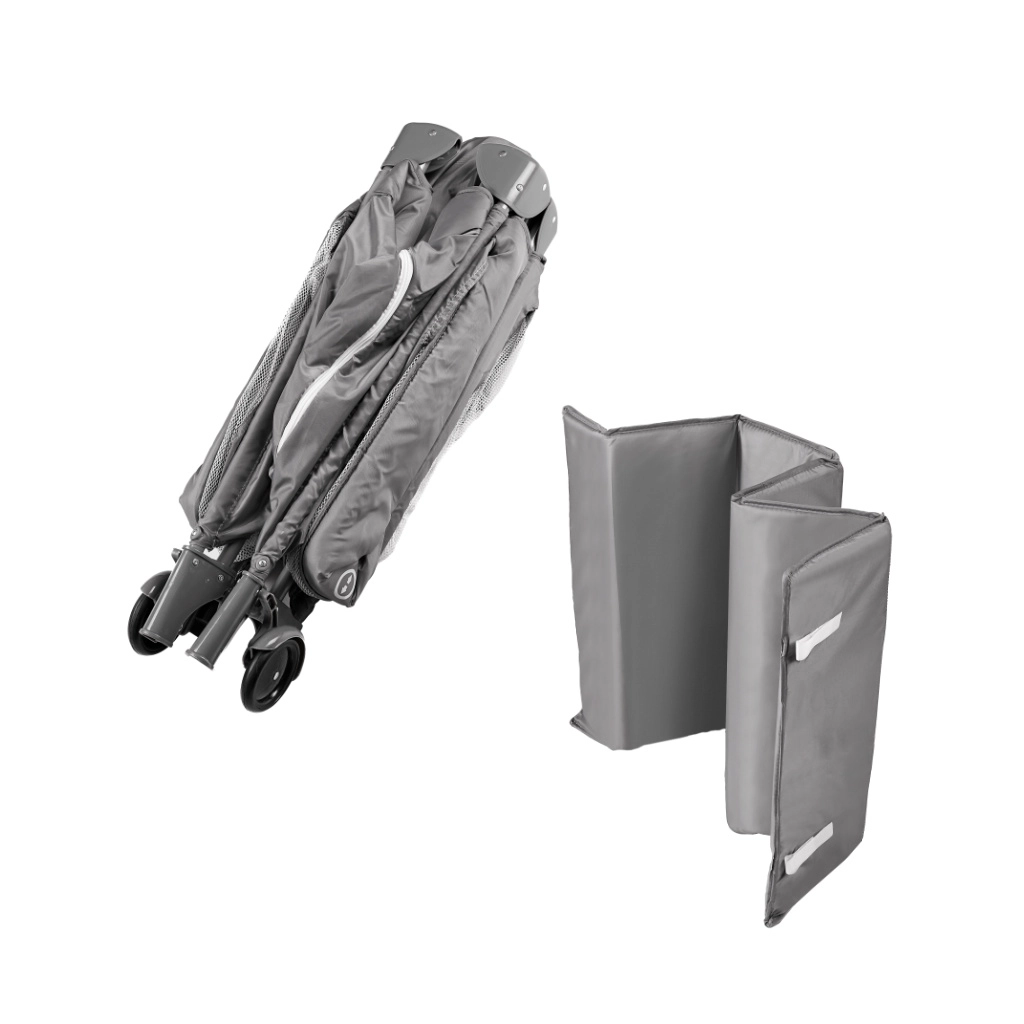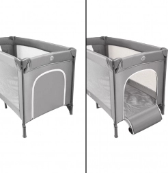 Postranní zipové okénko usnadňuje přístup rodičům a dětem umožní samostatný výlez. Uvnitř je matrace upevněná na suché zipy, která stabilizuje dno a zvyšuje komfort spánku. Po složení je postýlka velmi kompaktní a vejde se do kufru auta, přiložená taška s uchy usnadňuje přenášení i skladování.