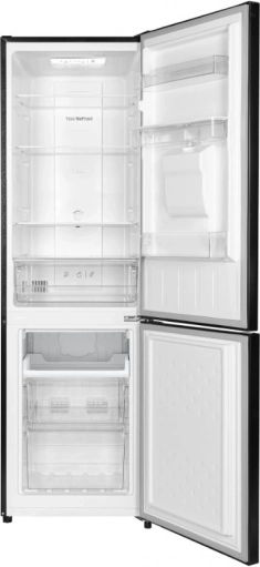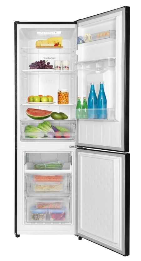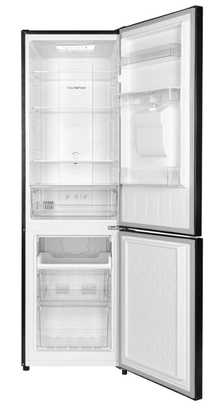 Tato volně stojící chladnička s mrazákem dole zaujme čistým designem v černé barvě i každodenním komfortem. Total NoFrost brání tvorbě ledu, takže už žádné odmrazování, a LED osvětlení zajišťuje jasný přehled i v rozích. Praktický dávkovač vody ve dveřích nabízí rychlou dávku osvěžení bez nutnosti otevírat chladničku.
