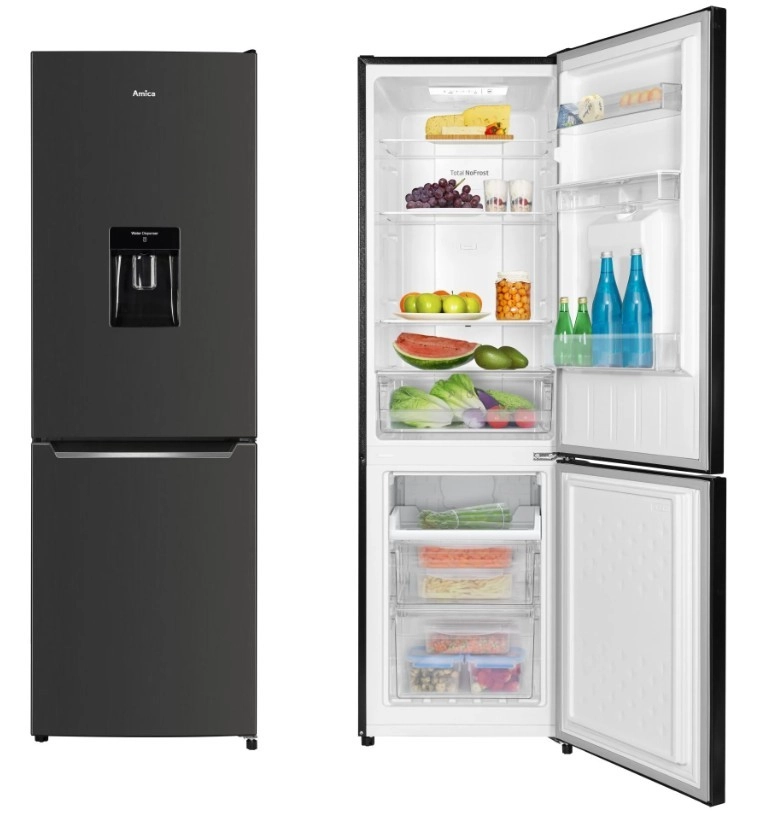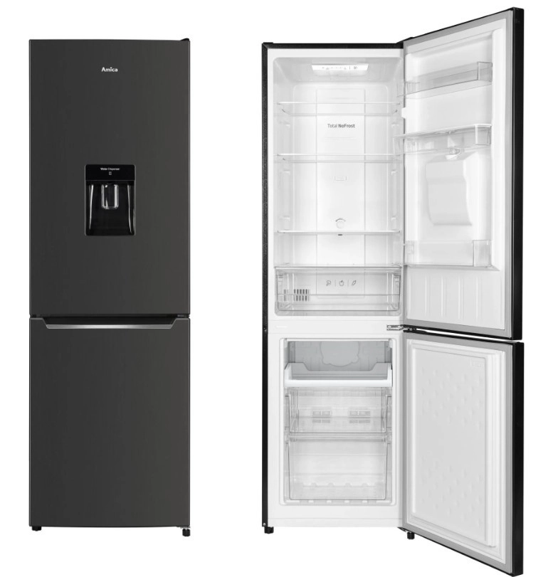 Volně stojící kombinovaná lednice s mrazákem AMICA s dávkovačem vody a NoFrost