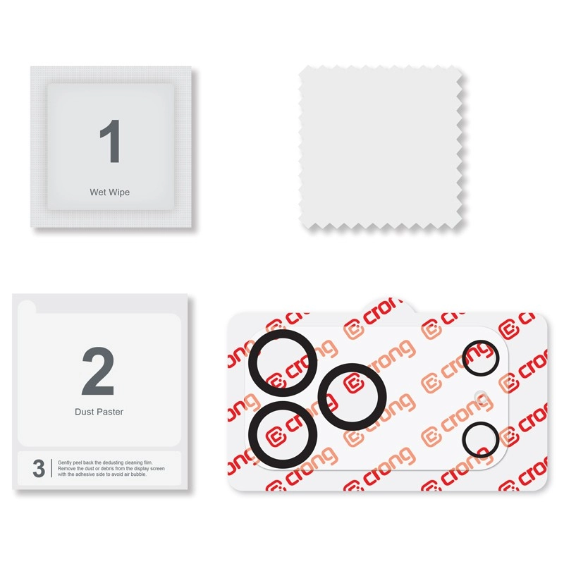 Speciální antireflexní kroužky kolem čoček pomáhají udržet vysokou kvalitu fotografií a videí bez odlesků. Instalace je rychlá a čistá – transparentní lepidlo usnadňuje přesné usazení a v balení najdete vše potřebné k přípravě telefonu.