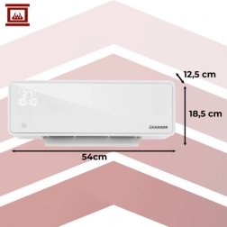 Komfortní a elegantní řešení pro domov, kancelář i prodejny. Kurtyna vzduchu KAMINER ZELVION s čelním sklem zajišťuje rovnoměrnou distribuci tepla díky širokoúhlé, oscilující žaluzii a dvěma stupňům výkonu 1000 / 2000 W. LED displej a intuitivní ovládání jedním tlačítkem usnadní každodenní použití, zatímco krytí IP23 chrání zařízení před vlhkostí a prachem.