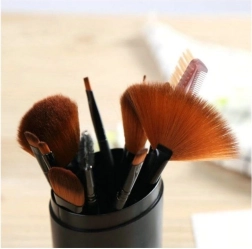 Kompaktní černé etui udrží štětce chráněné a srovnané. Praktické na toaletní stolek i do kabelky či cestovní tašky.
