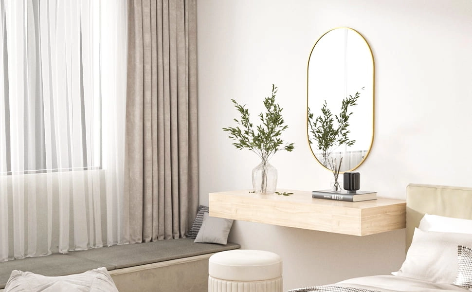 Vneste do svého domova nadčasovou eleganci. Oválný tvar v kombinaci s matně zlatým hliníkovým rámem podtrhuje industriální charakter a promění koupelnu, předsíň i obývací pokoj v stylové a útulné místo. Zrcadlo díky kvalitnímu sklu poskytuje dokonalý, nedeformovaný obraz a zároveň vizuálně zvětšuje a prosvětluje místnost.