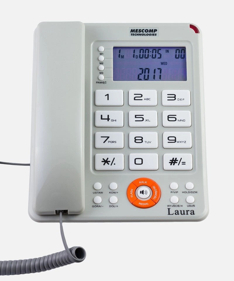 Mescomp Laura MT-816 kombinuje moderní vzhled s maximální přehledností a jednoduchým ovládáním. Díky podsvícenému displeji s nastavením kontrastu a velkým klávesám je vhodný pro seniory i uživatele se zhoršeným zrakem. V kanceláři oceníte historii hovorů, redial i funkci VIP pro ochranu důležitých kontaktů.