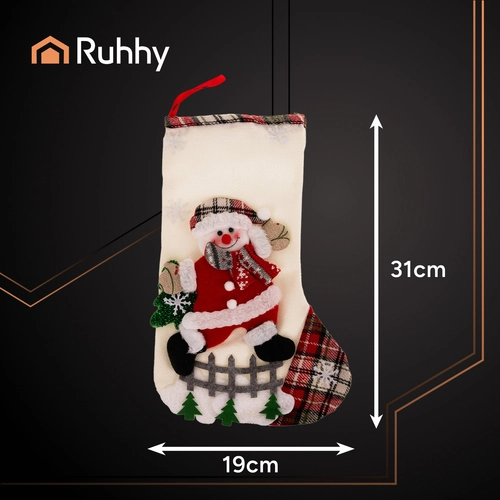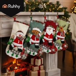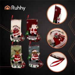 Stylové vánoční ponožky RUHHY v sadě 4 ks rozzáří váš domov a vytvoří kouzelnou sváteční atmosféru. Jsou měkké, prostorné a odolné, ideální na balení drobných dárků, sladkostí či dekorací. Motivy Santa, sob, sněhulák a medvídek v klasických vánočních barvách krásně doplní výzdobu a díky poutku na zavěšení je snadno umístíte na krb, zábradlí nebo vedle stromečku.