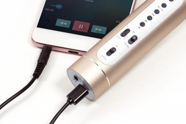 Tento přenosný karaoke mikrofon je ideální pro domácí zábavu, oslavy i večírky. Díky rozhraní Bluetooth 4.2 snadno spárujete telefon, tablet nebo počítač, případně využijete AUX připojení či přehrávání z TF karty. Vestavěné reproduktory 2×3 W zajistí čistý a dostatečně hlasitý zvuk.