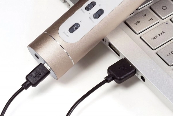 - karaoke mikrofon, USB–Micro USB nabíjecí kabel, audio kabel, návod