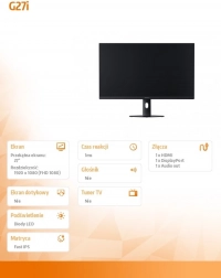 Herní monitor G27i je skvělou volbou pro hráče, kteří hledají výkon a spolehlivost. Přináší plynulé zobrazení a čisté detaily pro lepší přehled ve hrách i při multitaskingu.