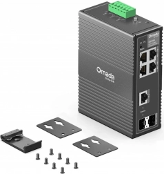 Průmyslový gigabitový přepínač OMADA IES206G nabízí 6 síťových portů (4x RJ45, 1x combo RJ45/SFP, 1x SFP), cloudové centrální řízení a robustní provedení IP40 pro spolehlivý provoz v náročných podmínkách. Podporuje VLAN, QoS, STP/RSTP, pracuje v teplotách -40 až 75 °C, má 6kV přepěťovou ochranu a redundantní napájení 1+1.