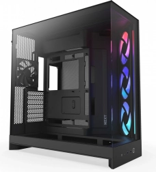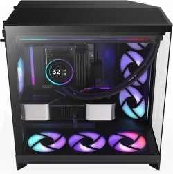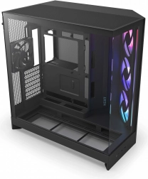 NZXT H9 Flow RGB je prostorná mid‑tower ATX skříň pro výkonné sestavy, která kombinuje špičkové chlazení, panoramatické tvrzené sklo a dvoukomorovou konstrukci pro perfektní management kabelů. Nabízí podporu až 10 ventilátorů, kompatibilitu s radiátory do 420 mm a je připravena na Back‑Connect základní desky (ASUS BTF, MSI Project Zero).